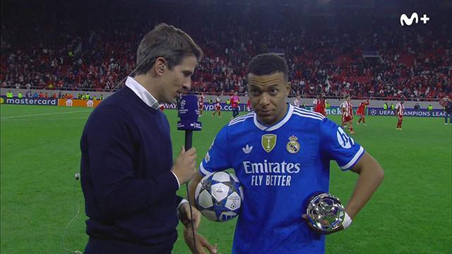 用一个大四喜帮助皇马在欧冠客场4-3击败奥林匹亚科斯后,姆巴佩接受了Movistar+的采访。
